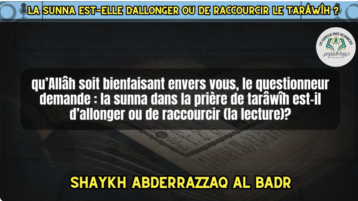 Fawaids Hadith La sunna est-elle d’allonger ou de raccourcir le tarâwîh ? parCercle des Sciences024 février 2026